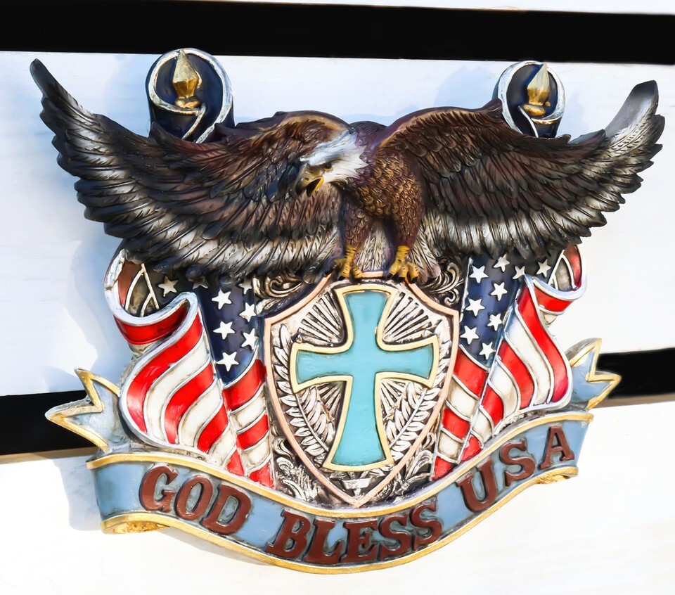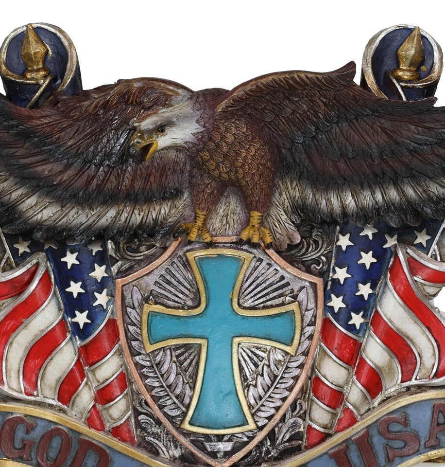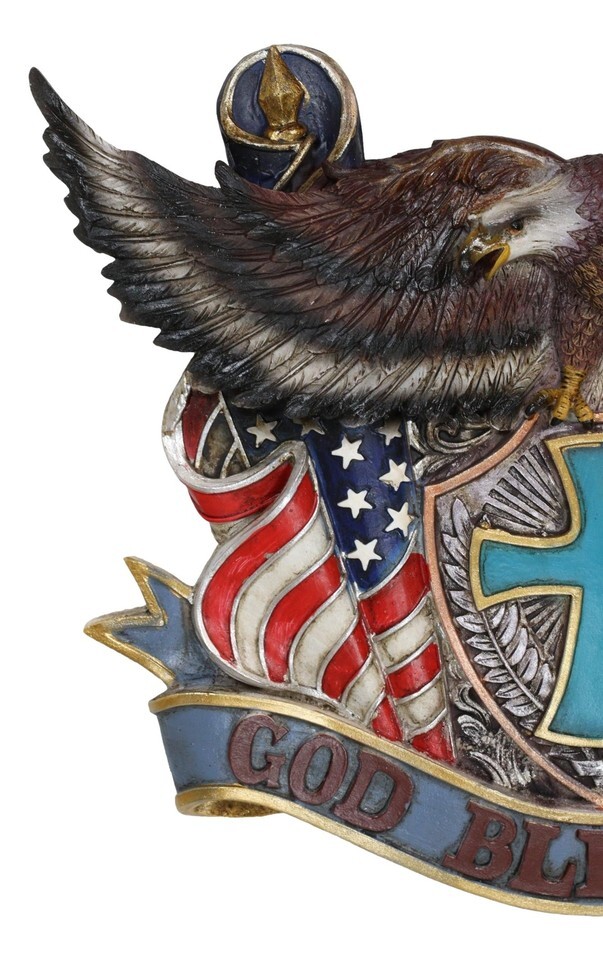 - Patriotic Flags Bald Eagle On Cross Crest God Bless USA Wall Plaque Sculpture