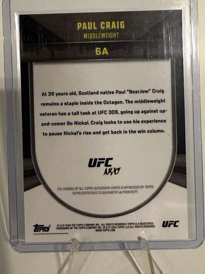 - Paul Craig Auto 2024 Topps UFC NYC /49 Parallel Autograph Signature