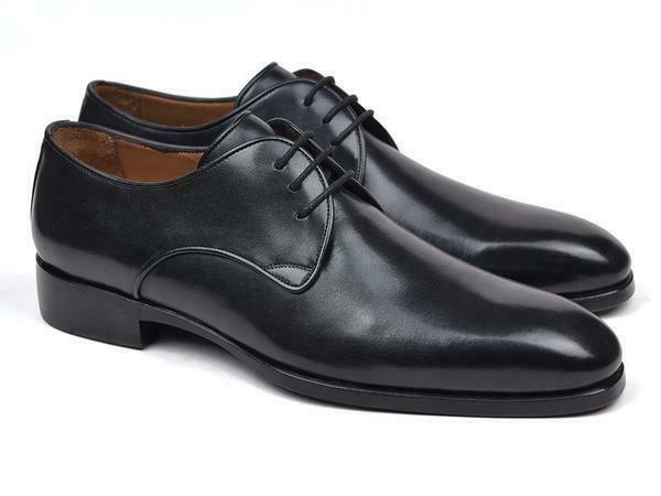 - Paul Parkman Mens Shoes Derby Black Leather Italian Calfskin Handmade 34DR-BLK