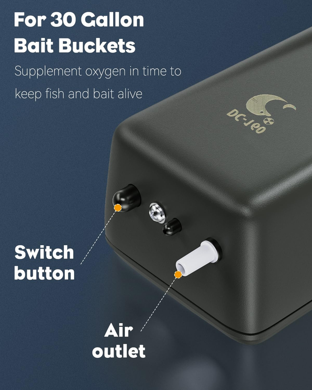 Quiet Operation: The outdoor oxygen pump gives out noise less than 50 dB like the hum of a refrigerator. Never scare the fish away when you?re fishing. Ensure continuous running without disturbance!