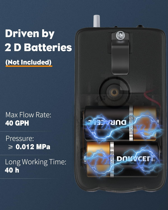 Battery Powered: Driven by 2 D batteries (Not Included), this live bait aerator features a long working time of 40 hours. An essential and reliable backup air source ? Great to be used during outdoor fishing or fish transportation.