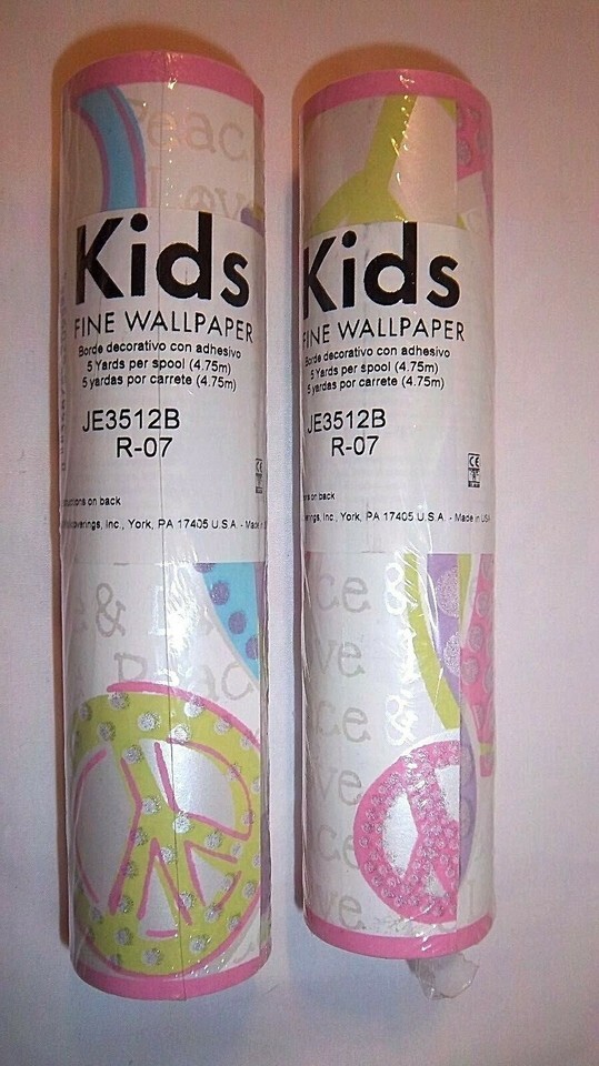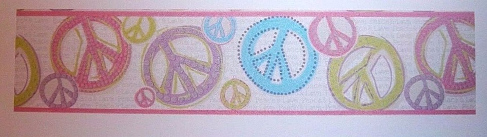 - Peace Sign Love Groovy Wall Border NEW 2 Rolls Pastel Silver Total of 30 ft