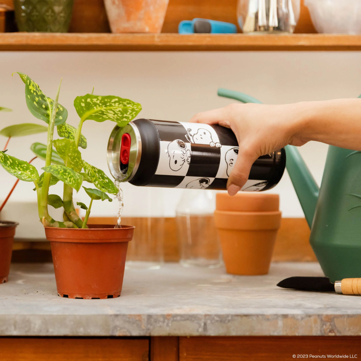 Take Care With Peanuts! Part of our special-edition Peanuts Cooler Collection for friends big and small who want to help take care of the earth, this stainless steel reusable can will keep your favorite drink chilled (or piping hot) while helping to eliminate the need for disposable cups. Plus, it stars Snoopy (and his many expressions), the coolest beagle on the planet!