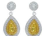 - Pear Cut Natural Fancy Yellow 1.62CT Diamond Drop Dangle Earrings 14k White Gold