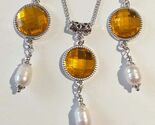 - Pearl yellow Victorian Silver jewelry set yellow set necklace earrings Boho pear
