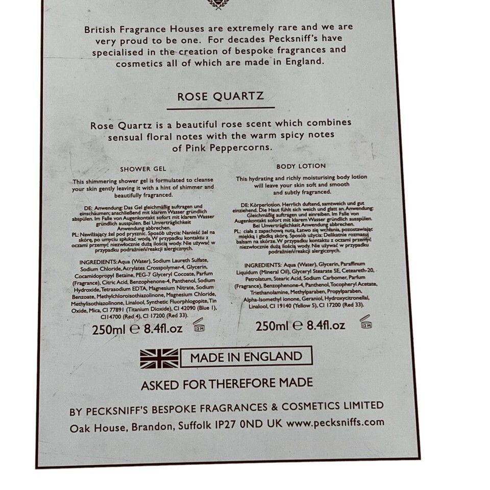 - Pecksniff's Rose Quartz Shower Gel & Body Lotion Set New Open Box Duo