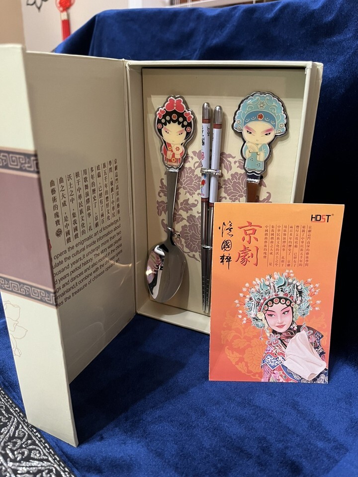 - Peking Chinese Opera Flatware Utensil Boxed Set Guo Cui Jing Ju Chopsticks Spoon