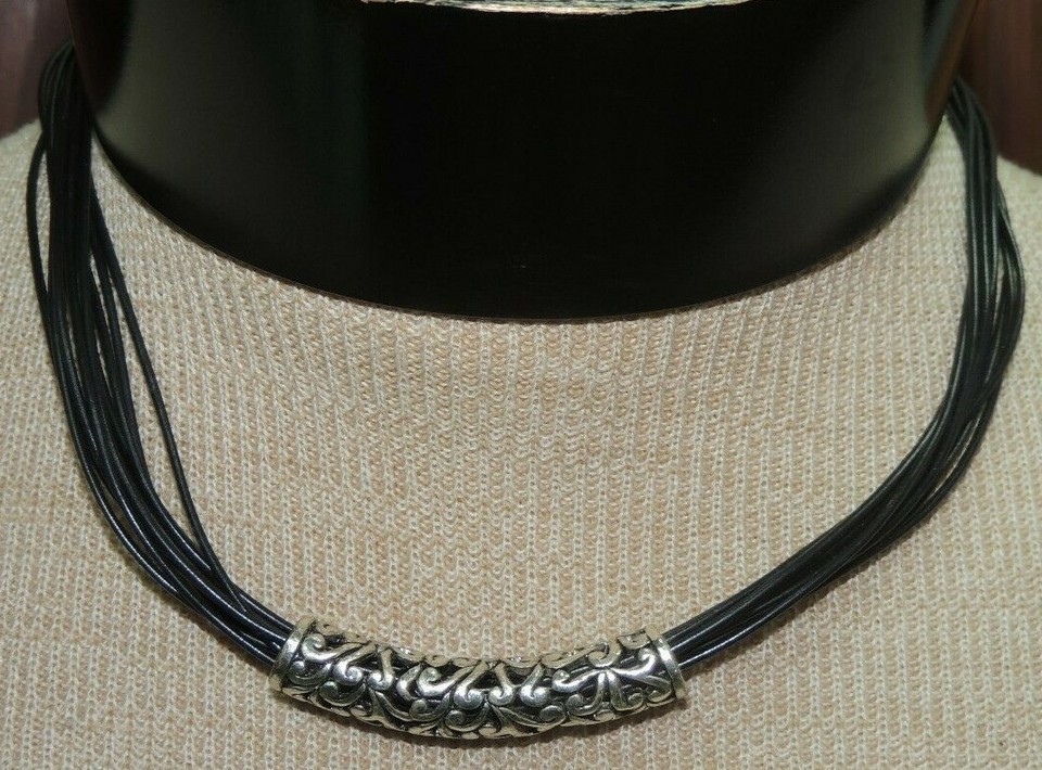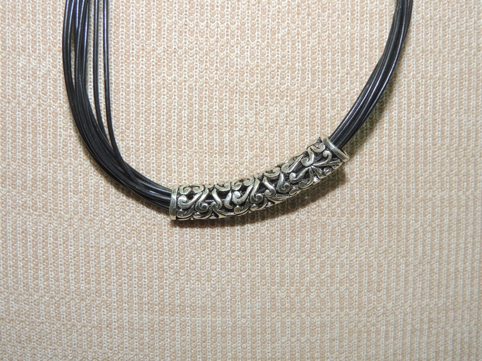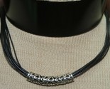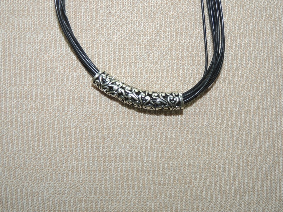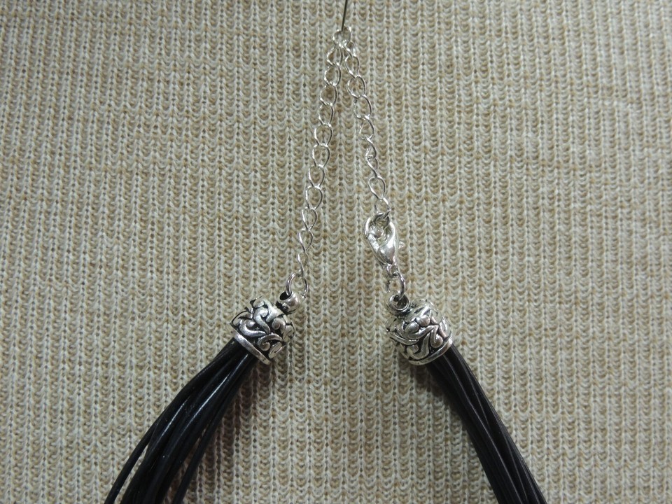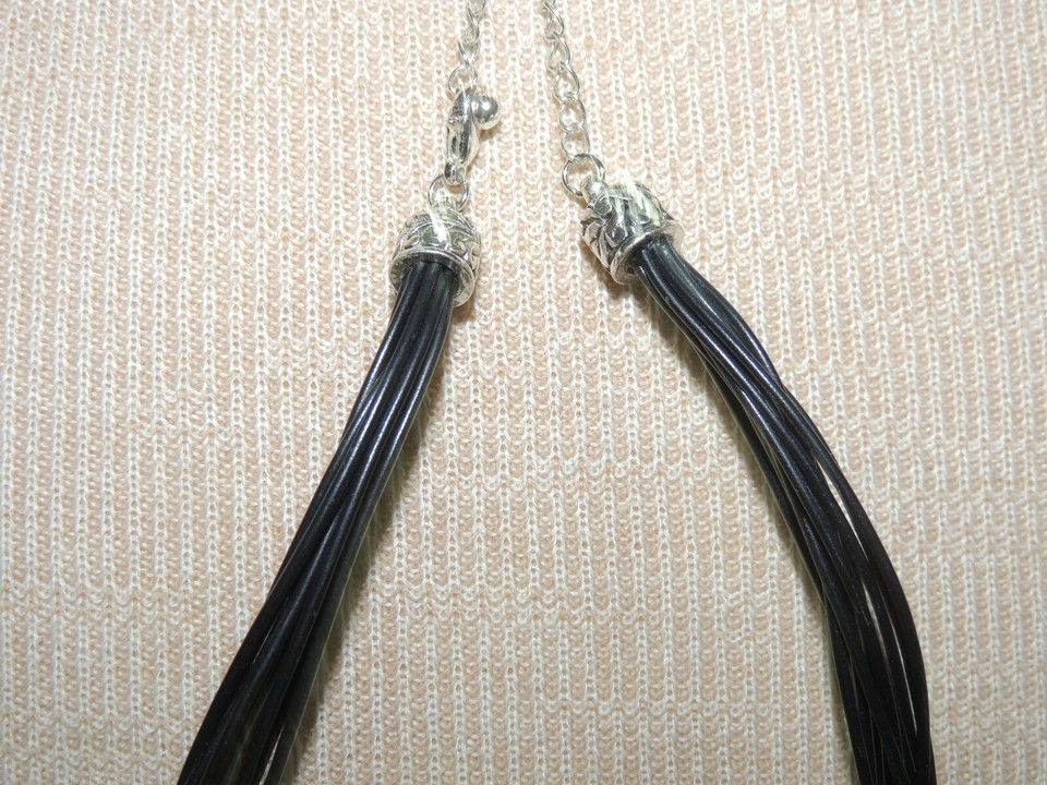 - Pendant necklace 14.5-18" on black cord unmarked possibly plated pewter Israel