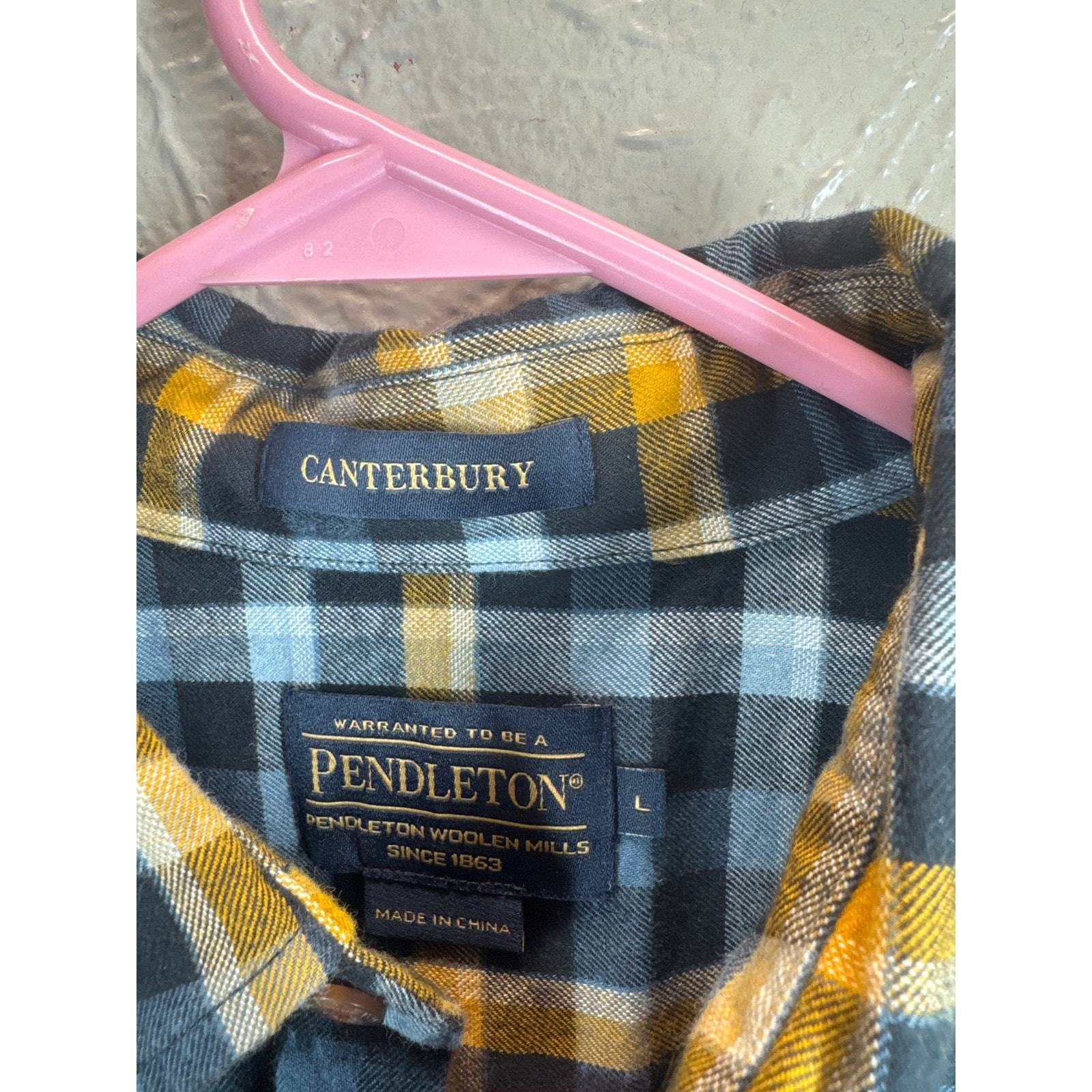 - Pendleton Canterbury Blue Checkered Flannel Merino Wool Mix Pima Cotton Large