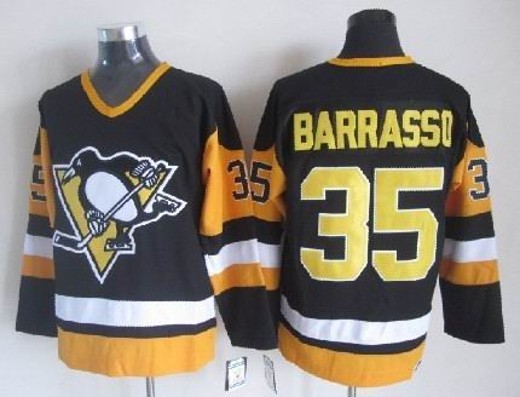 - Penguins #35 Tom Barrasso Jersey Old Style Uniform Black