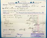 - PENNSYLVANIA GENERAL ELECTRIC Phil vintage October 18 1894 invoice on letterhead