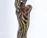 This approximately 9.25 inch rustic wand is sculpted to resemble a branch with a pentagram as a finial. Three pinkish purple braids adorn the top, giving it the appearance of draped ribbons fluttering in the wind.