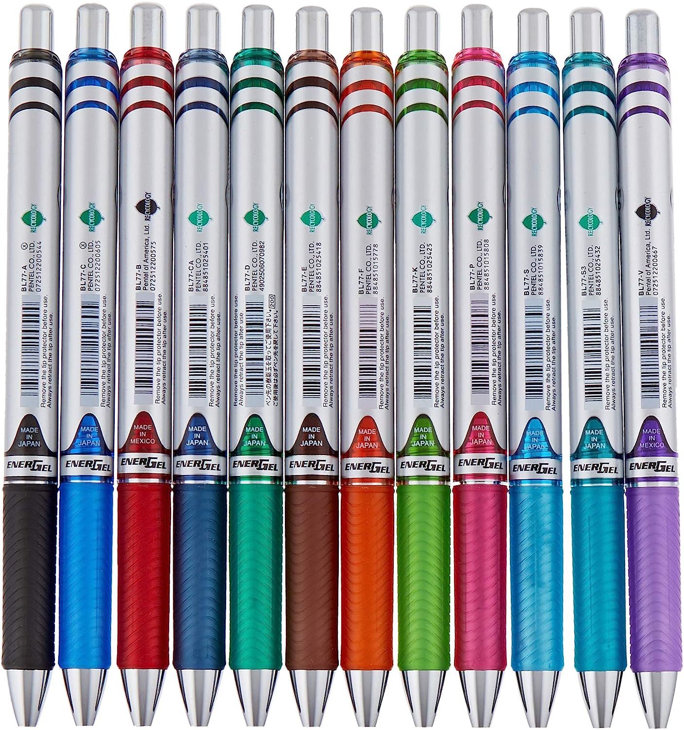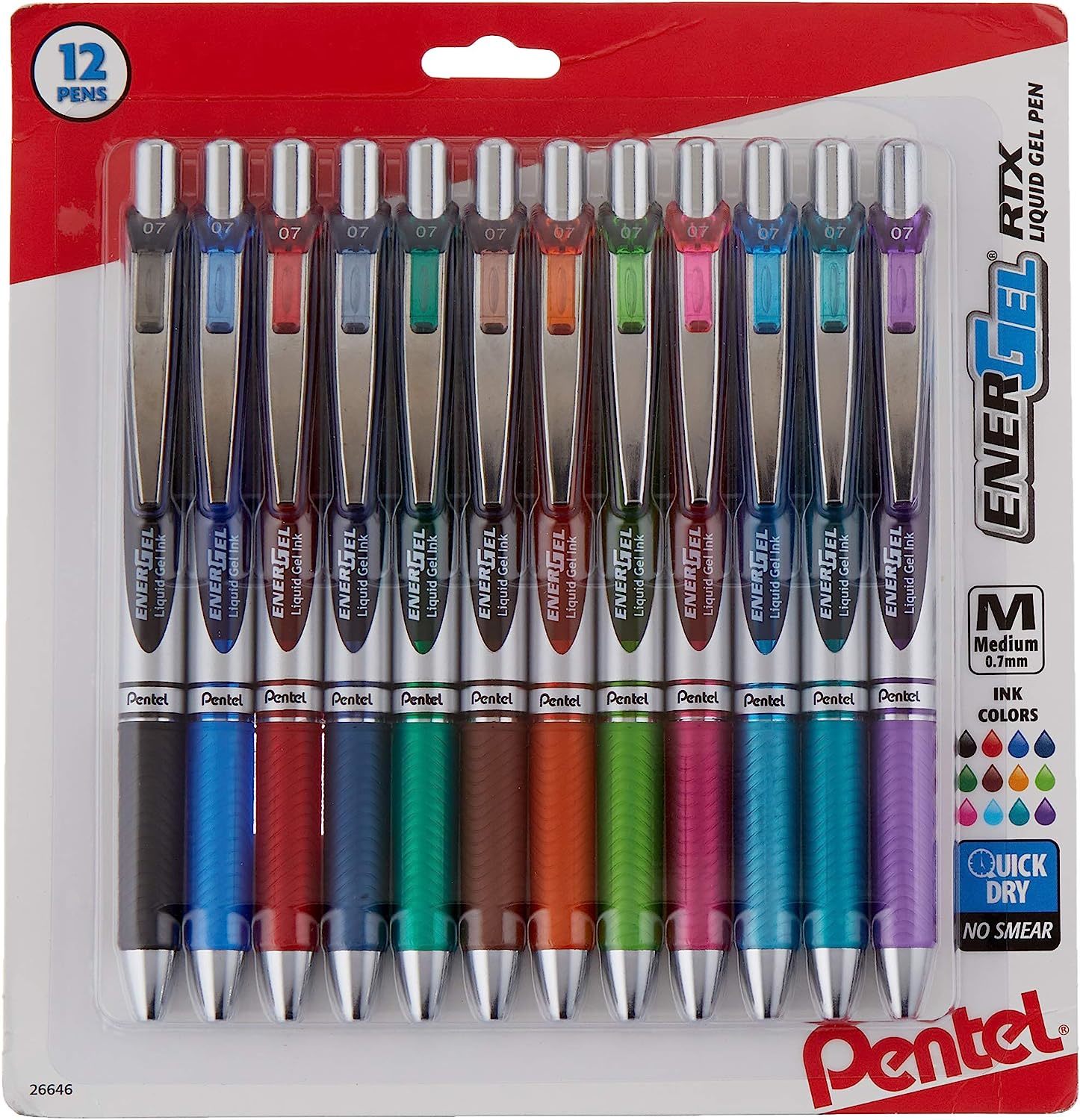 - Pentel EnerGel RTX Retractable (0.7mm) Assorted Gel Colors, 12 Pk (BL77BP12M)