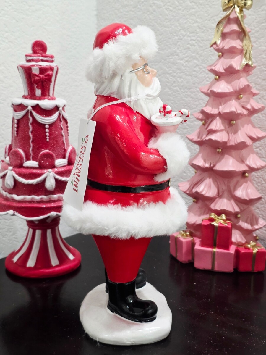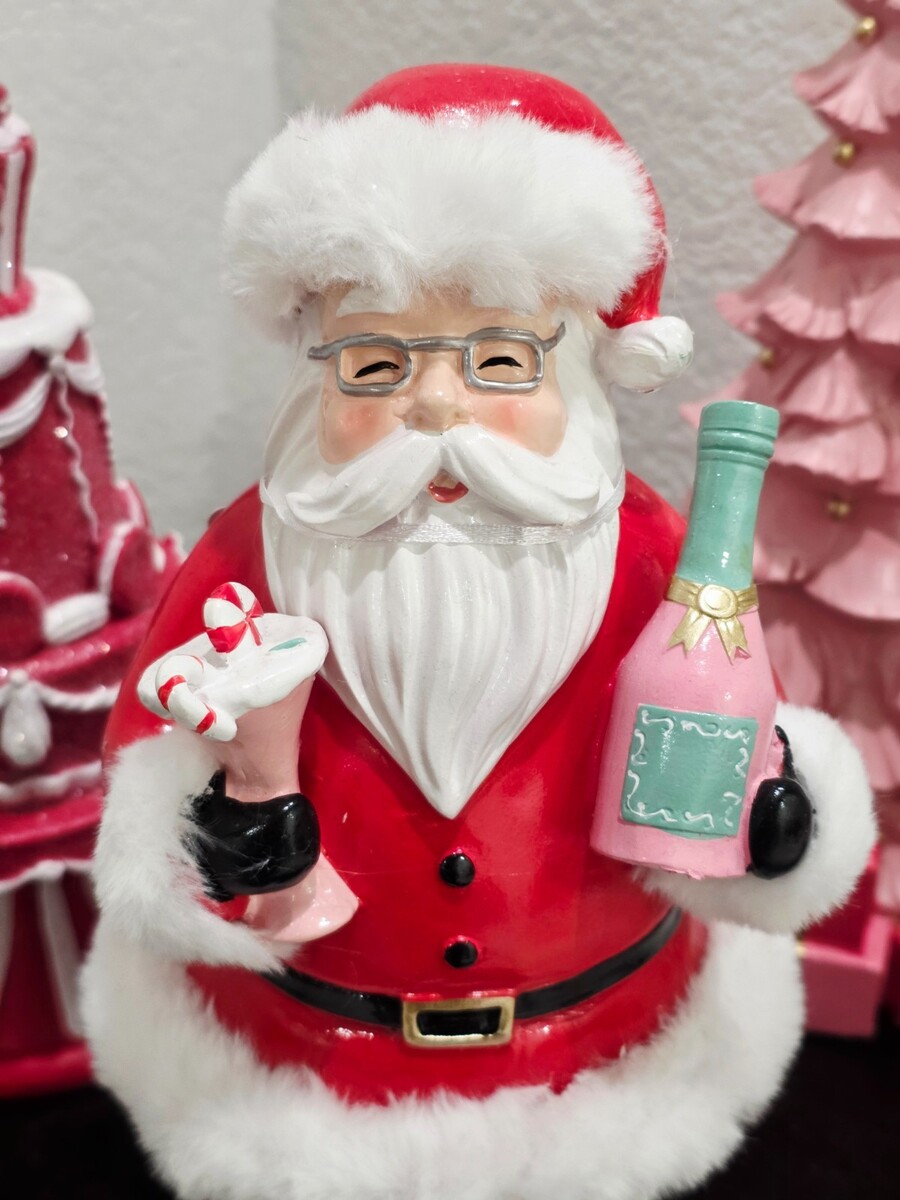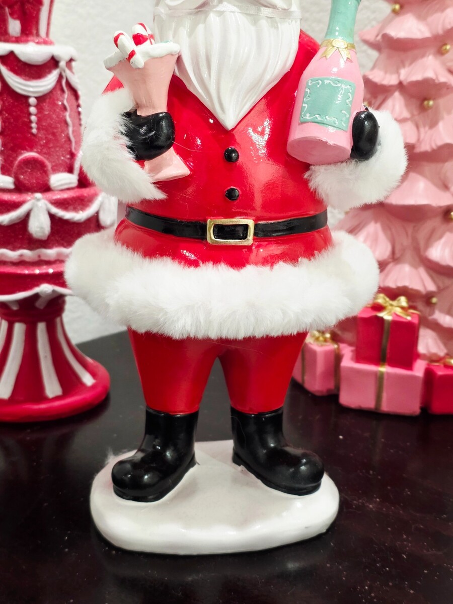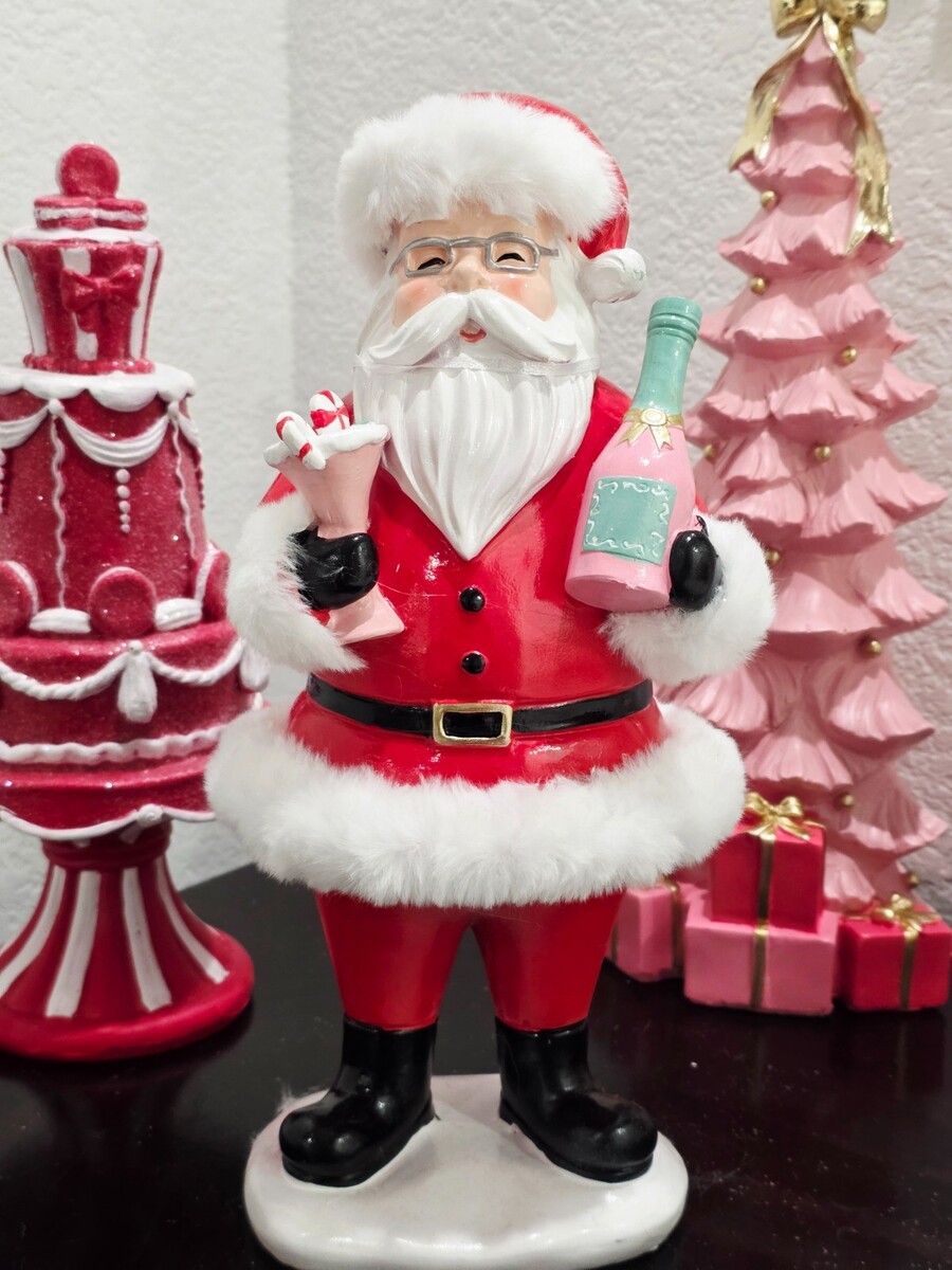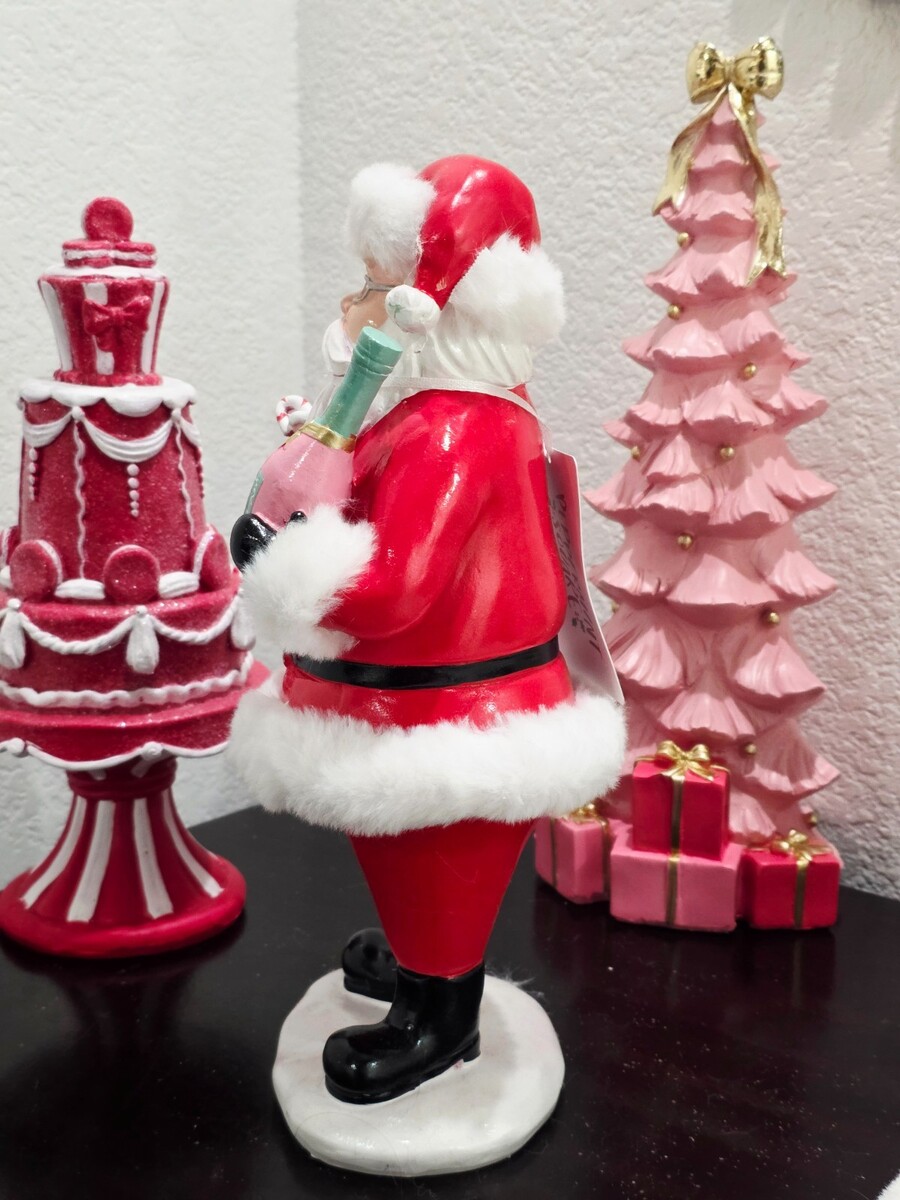 Up for sale we have this adorable Santa Claus figurine for your holiday tabletop decor. Santa holding a champagne bottle in one had and a glass in the other. This piece is sooo cute and will look adorable any where you place him. It's made of resin and stands approx. 12.25" tall. NEW