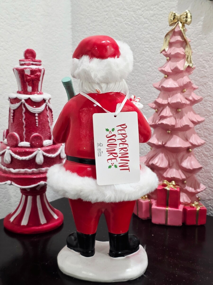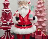 Peppermint Square Christmas Santa Claus Holding Champagne Bottle Figurine 12.25"