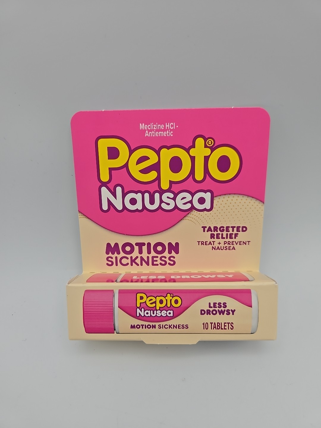 - Pepto Bismol Nausea Tablets for Motion Sickness & Nausea Relief, 10 Count