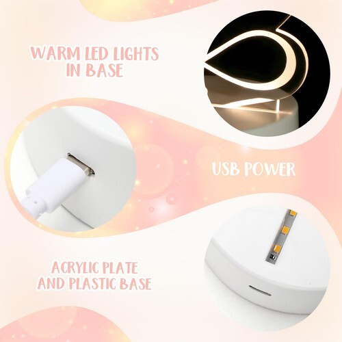 Easy to useThe night light combines a premium acrylic plate and a base made of plastic. It is convenient to be powered by USB cable. The elegant warm color light will add a sense of romance in your room.