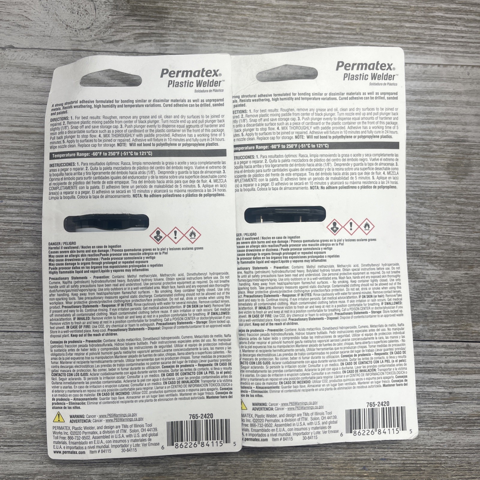 - Permatex 84115 5-minute Plastic Weld Adhesive, 0.84 oz., Cream. 2 Pack