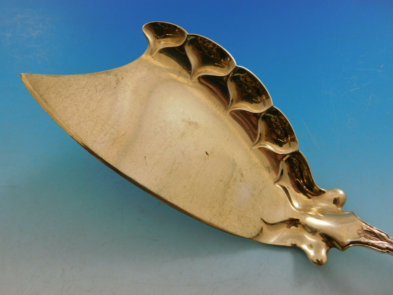 Beautiful sterling silver Ice Cream Serving Set, 2-piece, including Server measuring 11 5/8" and Spoon measuring 9" in the pattern Persian by Tiffany. This piece features stunning design throughout the entire handle and stunning gold-washed scalloped serving areas. It is monogrammed (see photo) and in excellent condition.