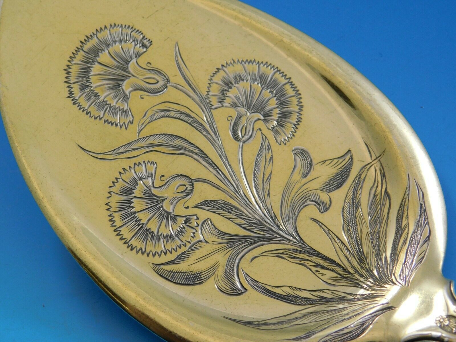 Sterling silver flat handle gold washed Pie Server with bright-cut carnations, all sterling 10 1/4" in the pattern Persian by Tiffany and Co. It is not monogrammed and is in excellent condition.