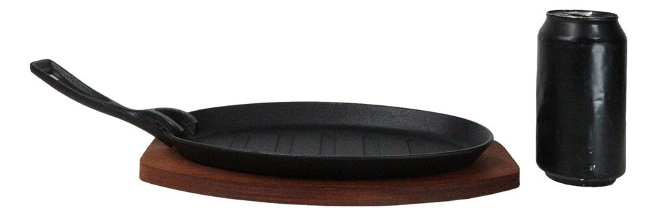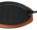 - Personal Size Cast Iron Oval Fajita Steak Pan Skillet With Wood Trivet Base