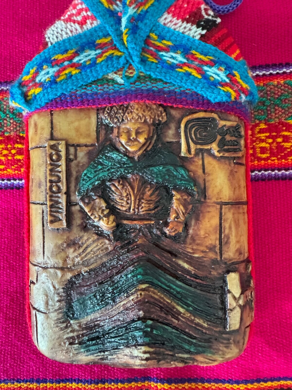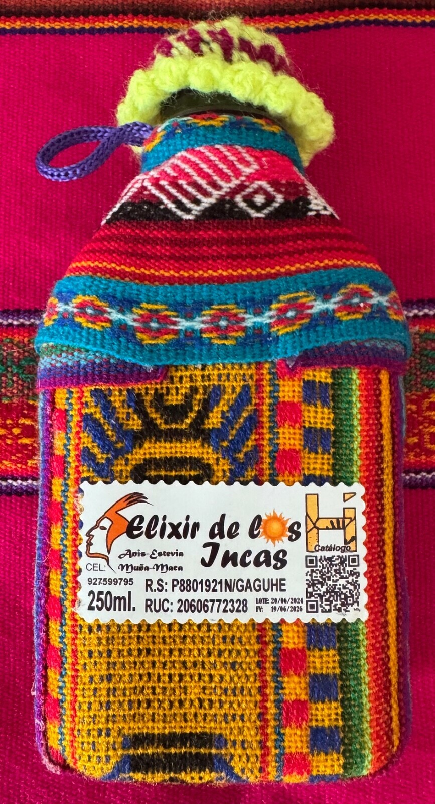 - Peru Cusco Faux Leather Fabric Wrap With Hat Plastic Bottle Size 6.5" Empty