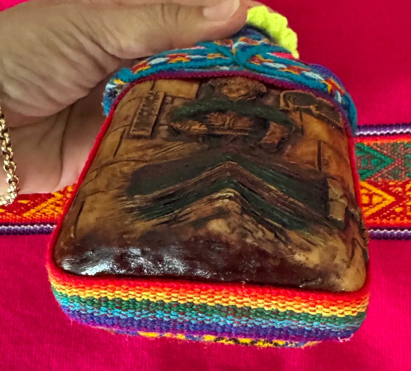 Peru Cusco Faux Leather Fabric Wrap With Hat Plastic Bottle Size 6.5" Empty