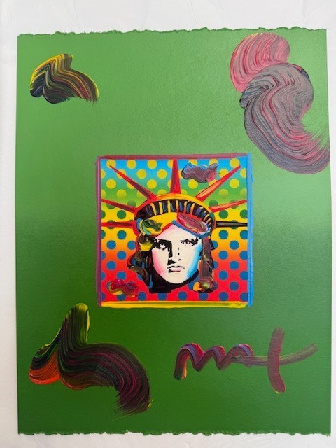 - Peter Max Liberty Head 8.5 x11 Mixed Media Overpaint