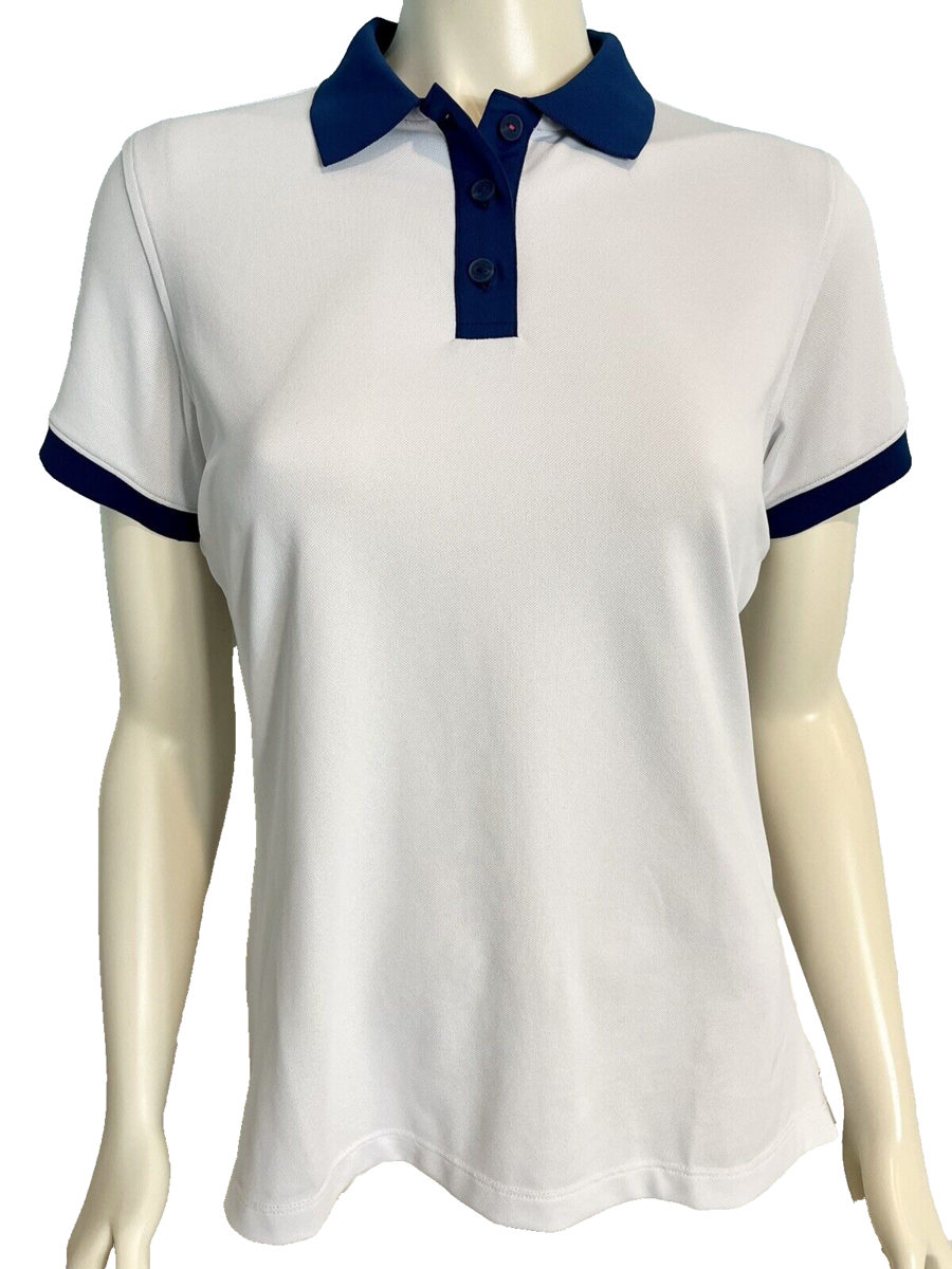 - Peter Millar With with Blue Trim Short Sleeve Polo Size M
