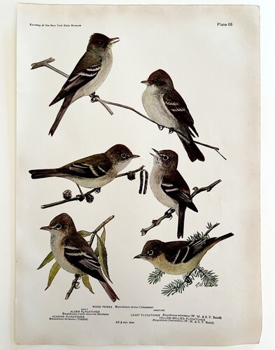- Pewees And Flycatcher 1936 Bird Lithograph Color Plate Art Print DWU12D