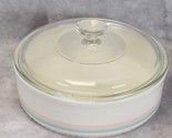 Pfaltzgraff Aura 1.5 qt Round Covered Baker 8.75" Cream Pink/Blue Bands