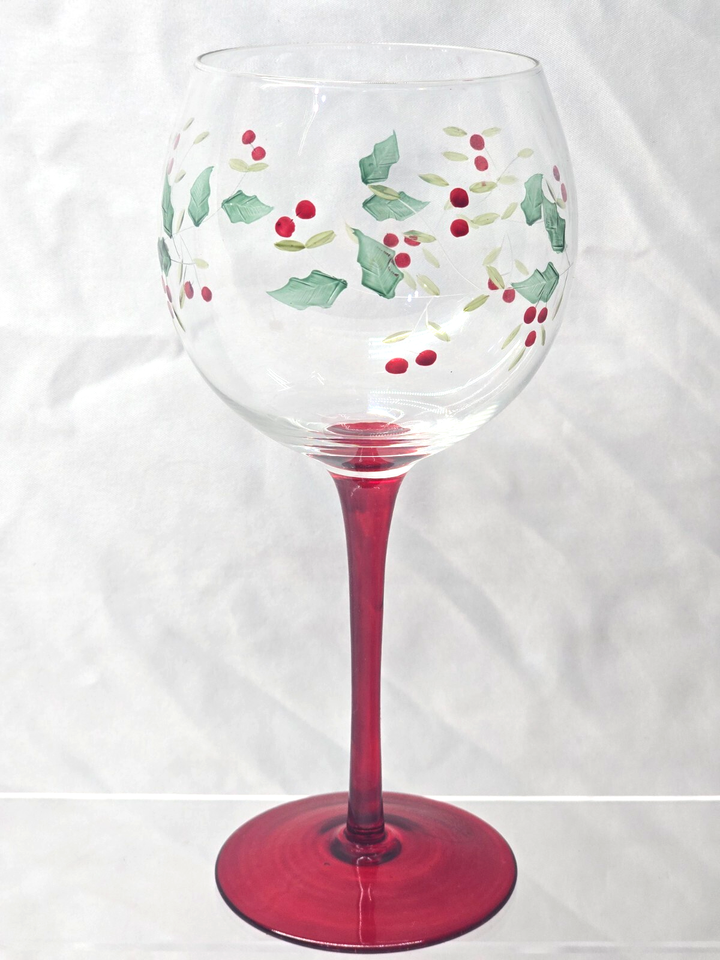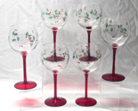 - PFALTZGRAFF Wine Stem WINTERBERRY 8.5" Hand Painted Glass - UNUSED Set Of 6 +1