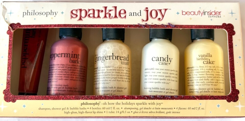 - Philosophy Holiday Set Shower Gel Lip Shine Peppermint Vanilla Cake Candy Cane