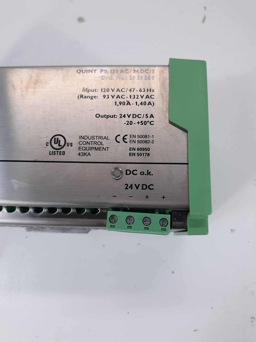 - Phoenix Contact 78-103-4300 Quint 5 Power Supply In 120VAC Out 24VDC 5A
