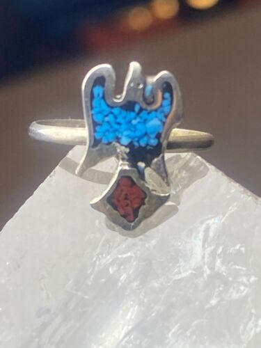 - Phoenix ring turquoise coral chips southwest sterling silver women girls dk