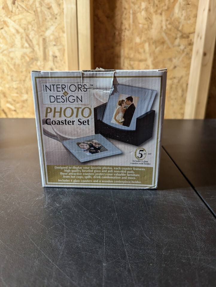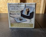 - Photo Coaster Set- 4 Glass Coasters and One Holder Interiors By Design Brand New