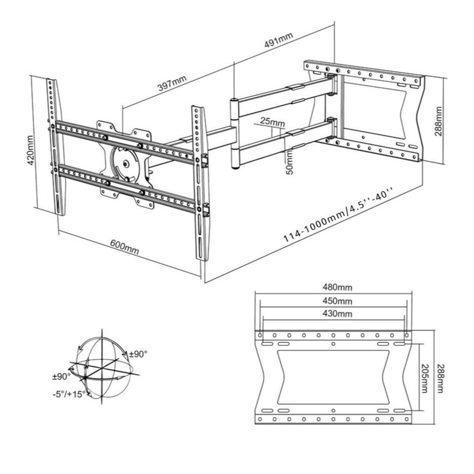 Compatible with most television brands and sizes ranging from 32 to 75 inches. Thanks to the huge extension you can even position your large TV perpendicular to the wall.