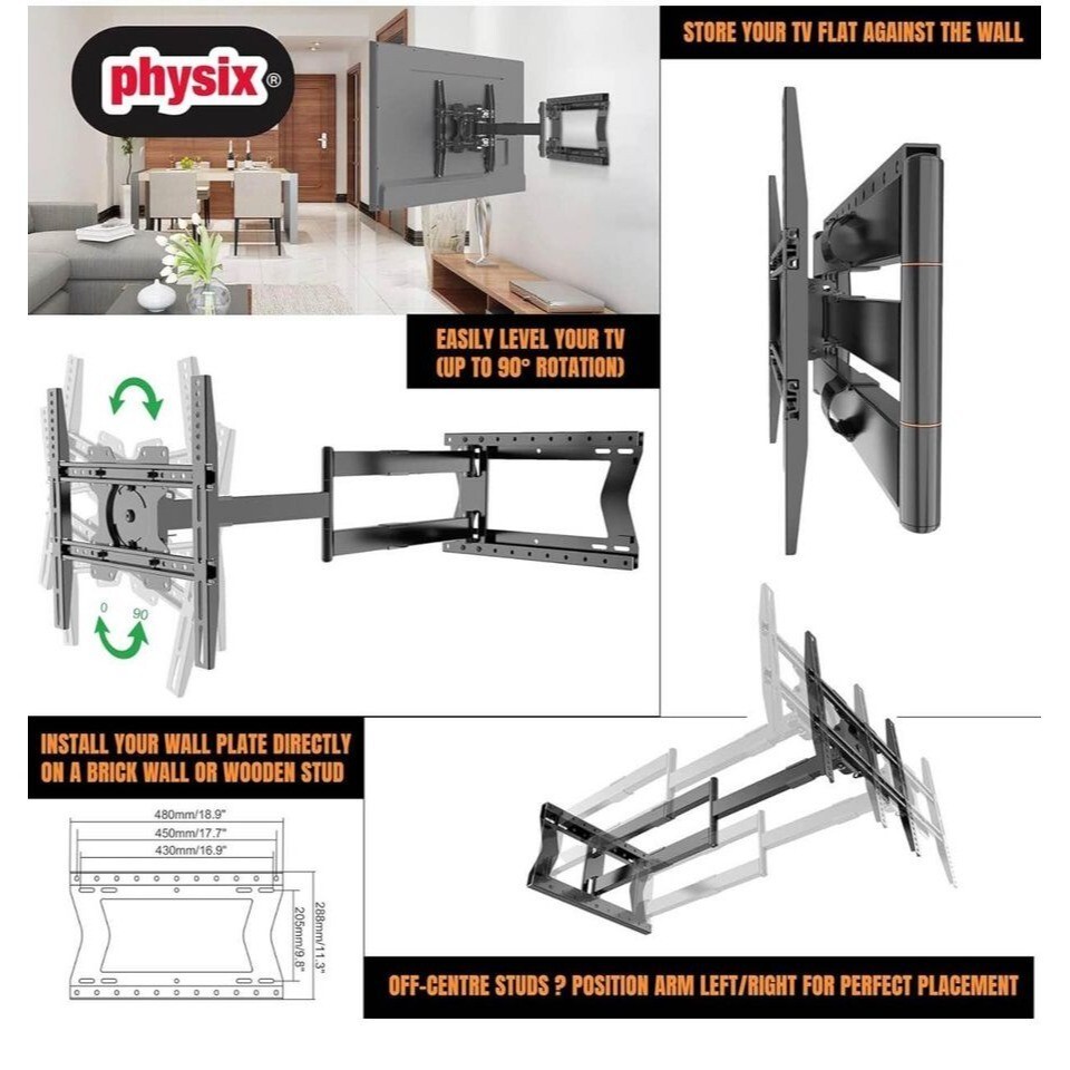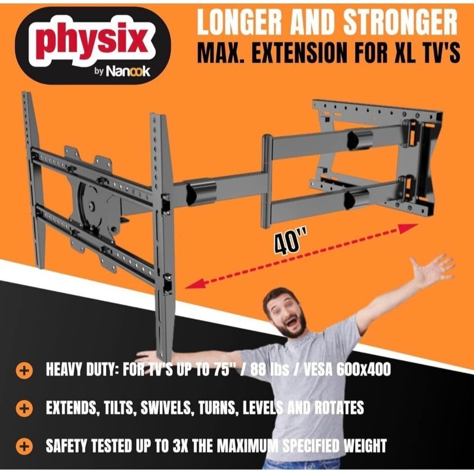 - Physix 2100 Long arm TV Wall Mount for 32-75 Inch Screens, Extension up to 40 in