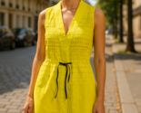 Piazza Sempione Yellow Eyelet Tunic Dress Italy Sleeveless Belted Resort Wear 18