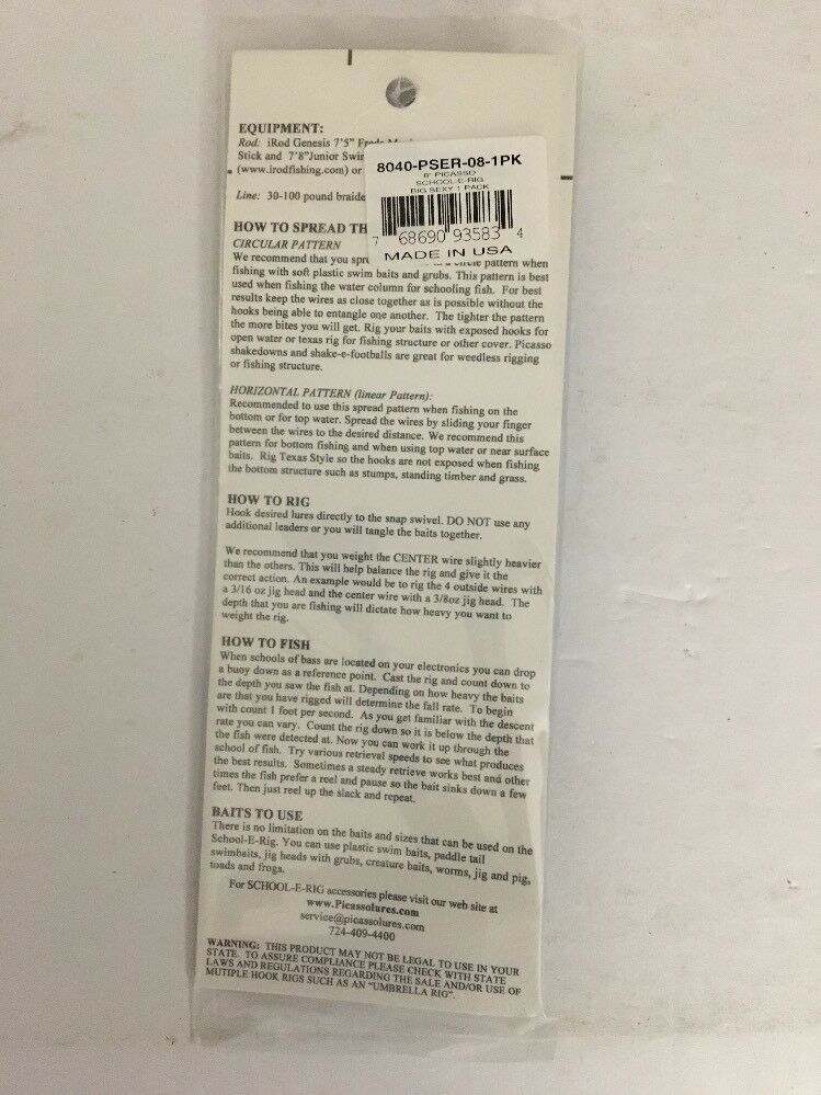 - Picasso School E Rig Bait Ball 5 Wire Umbrella Rig Big Sexy-#8040-PSER-08-1pk