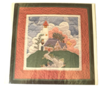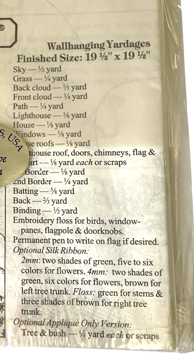 The Piecemakers Quilt Pattern Lighthouse Wallhanging + Notecard. He Lighteth My Way is a piece of quilting craft from the United States. This wallhanging design features a lighthouse on on a hill of green with billowy clouds as a backdrop.