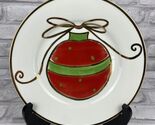 Pier 1 Holiday Plate Handpainted Ornament White Red Green Gold Trim Dessert