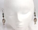 Pierced Earrings Dangle Spinner Fish 3" Fisherman Hammered Silver Metal