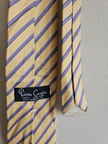 - Pierre Cardin 100% Silk Men's Tie Necktie, Yellow/Purple Stripes NWT