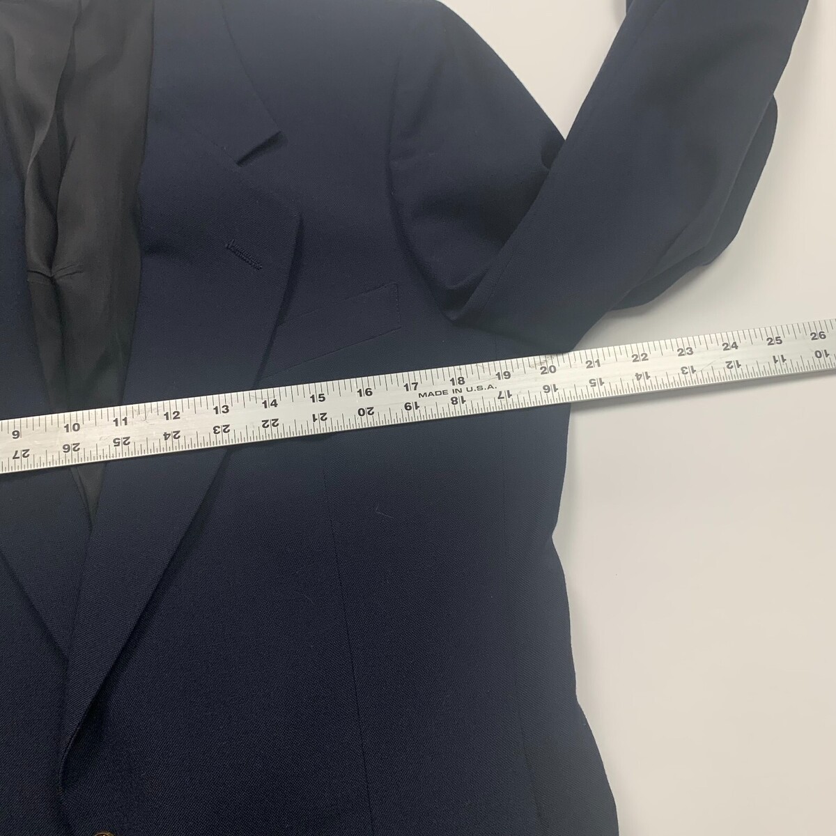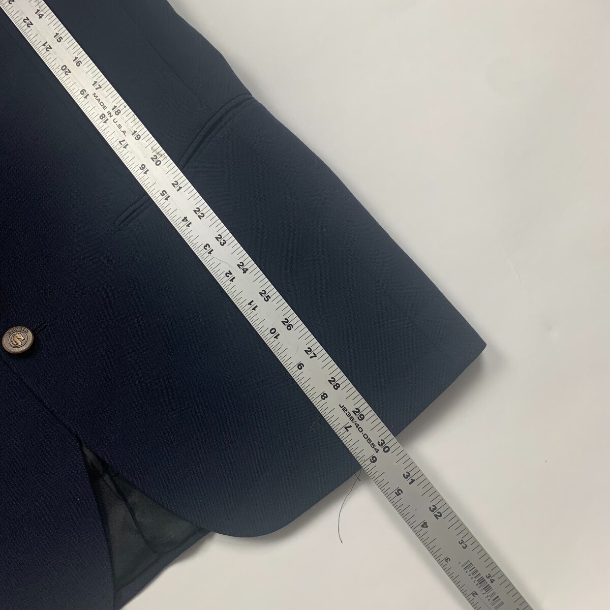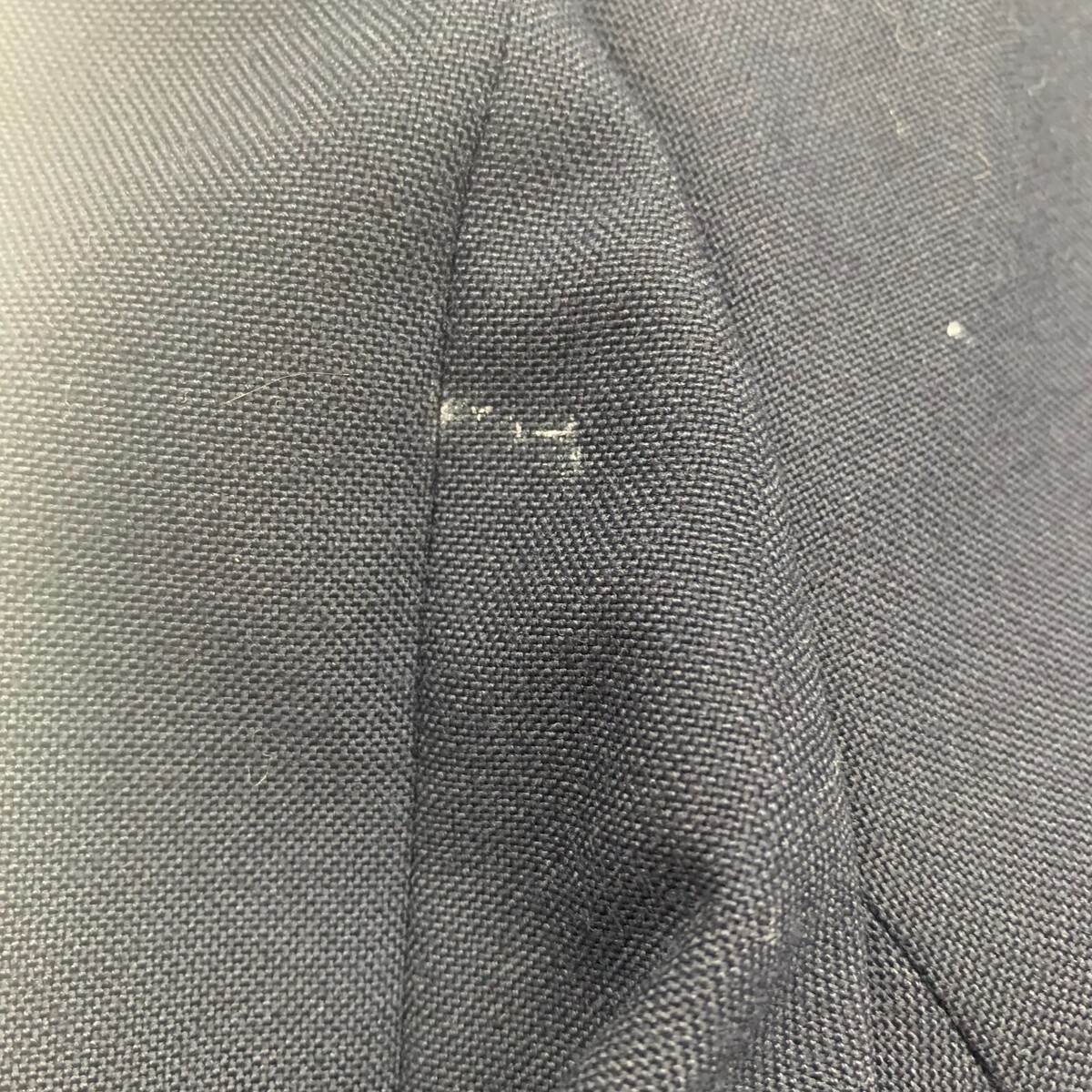 Good preowned condition. There?s a small whiteish discoloration in the fabric on the sleeve. May be able to be retouched up/dyed. See photos for detail.