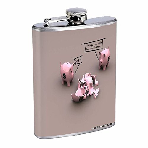 - Piggy Bank Funny Hip Flask Stainless Steel 8 Oz Silver Drinking Whiskey Spirits