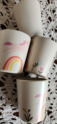 - Pillowfort™ ~ Set of Four (4) ~ 7.7 oz ~ Melamine ~ Unicorn ~ 3.3" Tall Tumblers