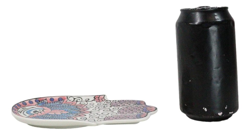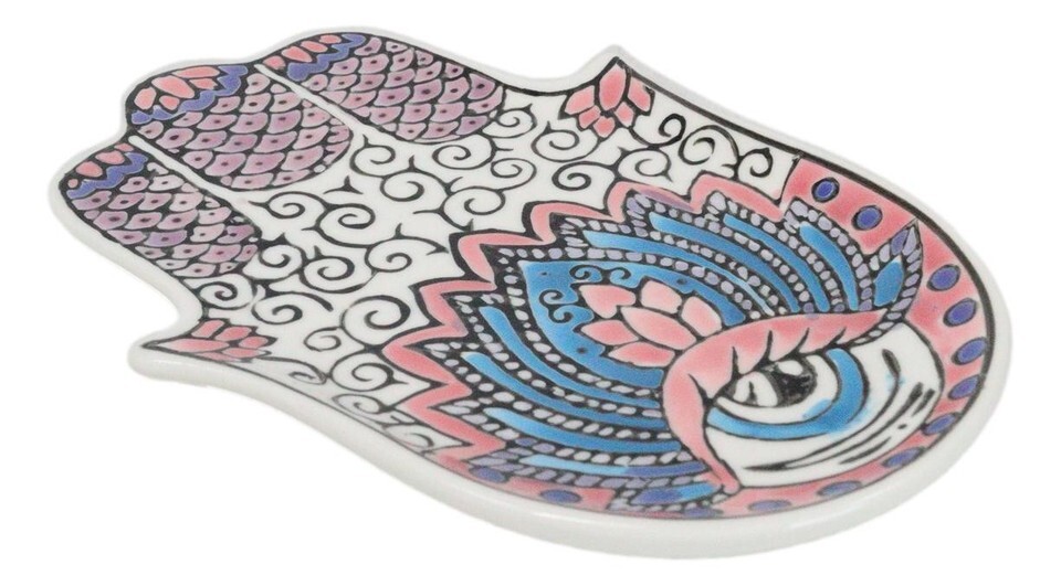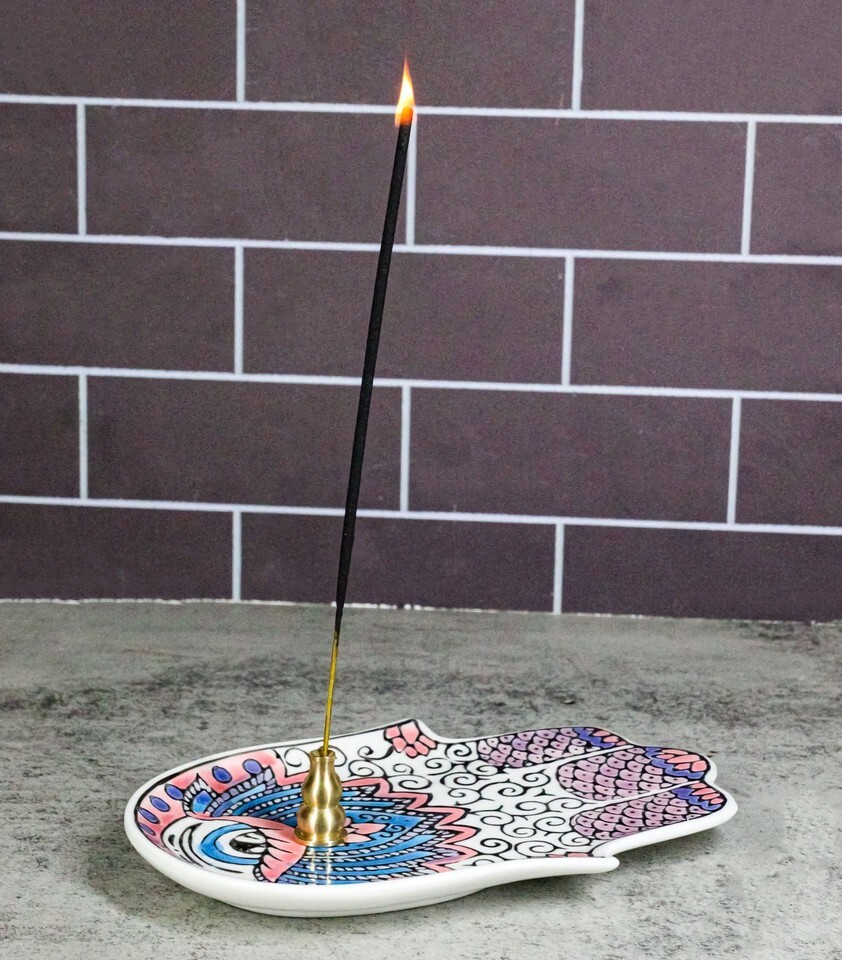 - Pink Chakra Hamsa Palm Mandala and Evil Eye Ceramic Dish Brass Incense Holder