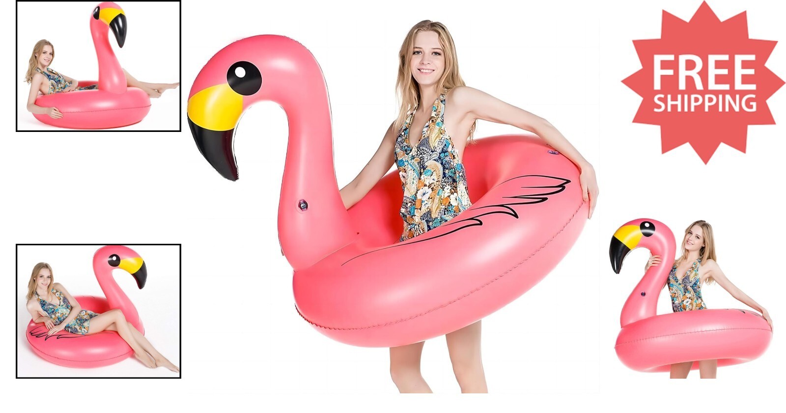 Pink Flamingo Pool Float - Quick Inflate 46" x 40" for Summer Fun