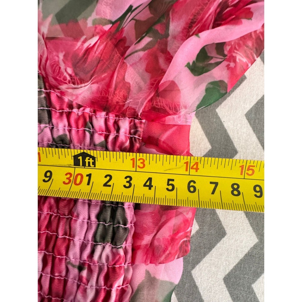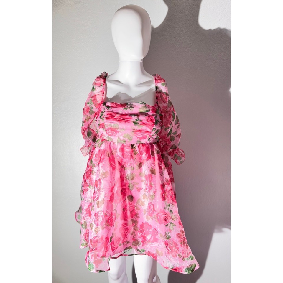 Pink Floral Puff Sleeve Mini Dress - THIRTY/THIRTY Size Small Romantic Sheer Overlay